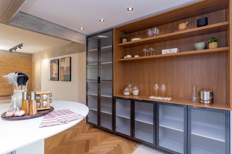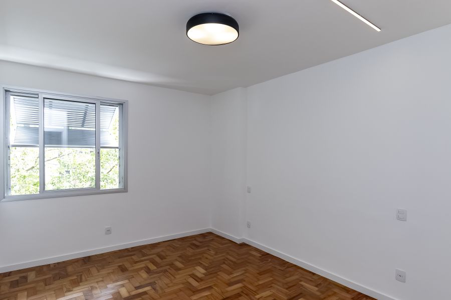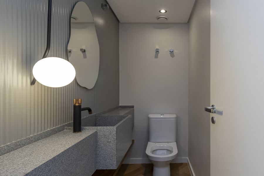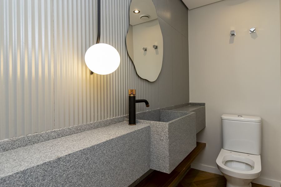 A planta original, já muito funcional, facilitou a transformação do espaço. O resultado é um apartamento moderno e aconchegante, com uma bela suíte, dois dormitórios atendidos por um banheiro social, lavabo e uma ampla sala integrada à cozinha.