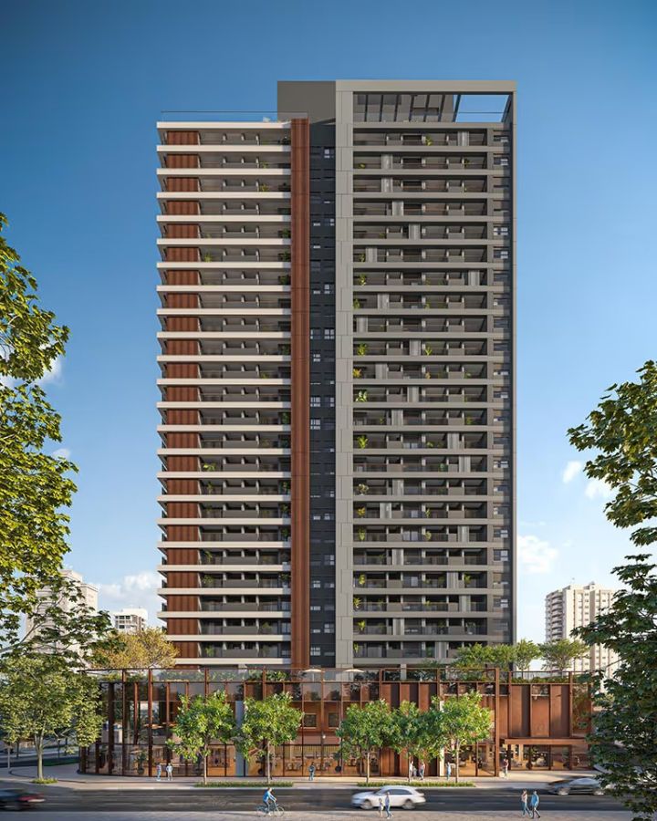 No encontro da Alameda Santos com a Rua Rafael de Barros, o Alameda 45 nasce integrado ao entorno vibrante da Av. Paulista. A esquina comercial envidraçada convida à cidade, enquanto a torre recuada abriga lazer elevado com vista e privacidade. Piscina, academia, spa e rooftop compõem espaços de convivência e contemplação. A arquitetura é pura e elegante, revelando uma grelha estrutural que traduz equilíbrio entre urbanidade e conforto.