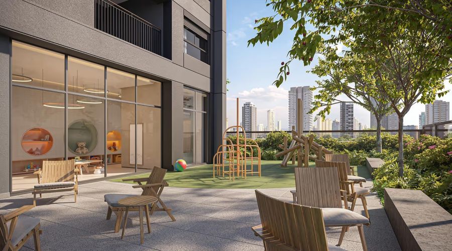 O paisagismo de André Paoliello propõe um diálogo entre natureza e cidade. Áreas verdes no térreo e nos pavimentos de lazer formam um jardim urbano contemporâneo, que convida à convivência e à contemplação. Em harmonia com a arquitetura, o projeto valoriza o verde como protagonista, criando uma atmosfera acolhedora, sofisticada e integrada à metrópole.