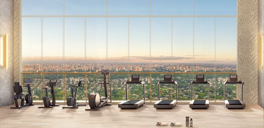Fitness com vista para treinos consistentes, spa e sauna seca para recuperação e bem-estar.