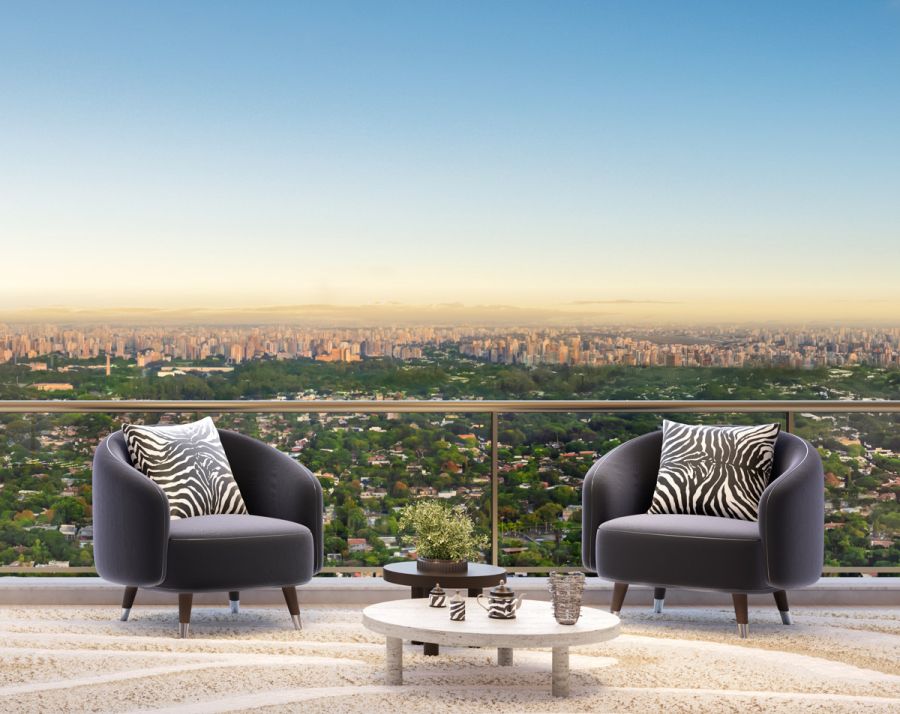 Torre Única com vista permanente para o Jardim Europa, até o Parque do Ibirapuera. Projeto de alto padrão com áreas comuns assinadas, com design e estética inspirados na Itália.
