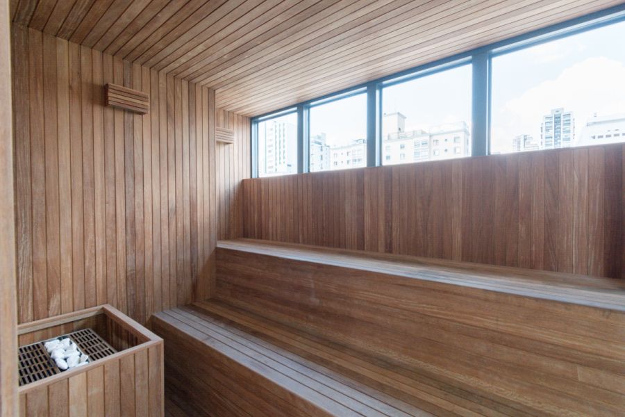 • Sauna, praça de convivência e lounge