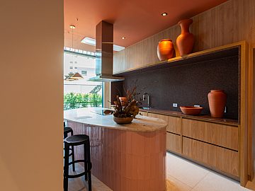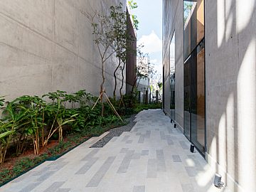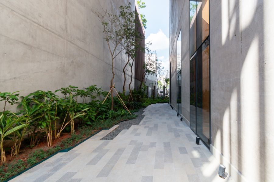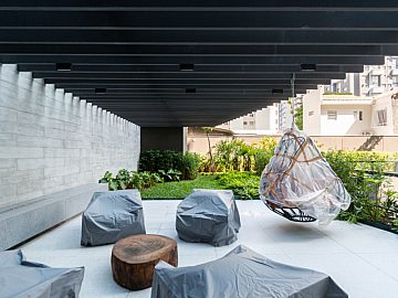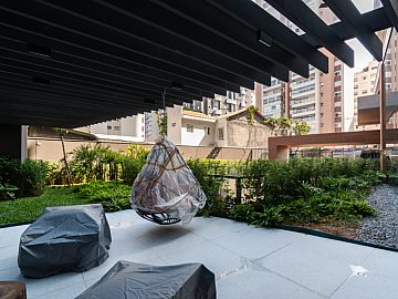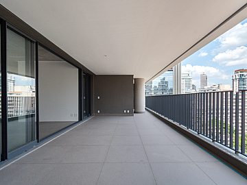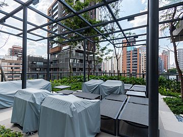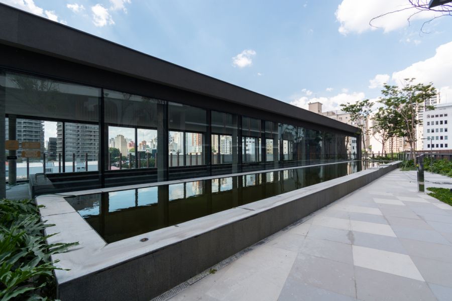 Torre única com 36 andares em terreno de mais de 3.600 m², totalizando apenas 91 unidades - exclusividade real. Arquitetura Aflalo & Gasperini, paisagismo Hanazaki e interiores Todos Arquitetura. Fachada icônica em formato de bumerangue, valorizando a vista para Jardins, Pinheiros e Vila Madalena.