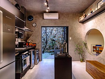 Com 160m² de área privativa, todos ambientes da casa foram cuidadosamente idealizados pelos proprietários que são do ramo da arte, moda e fotografia.