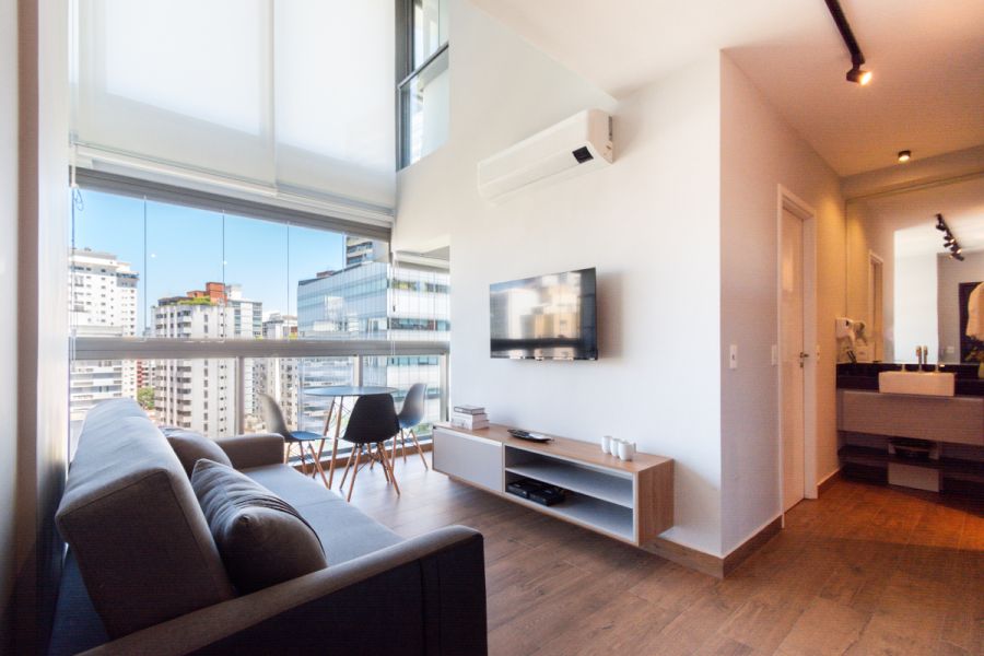 Apartamento duplex mobiliado à venda em Pinheiros, com 64m² bem distribuídos, 2 dormitórios sendo 1 suíte, e 1 vaga de garagem.