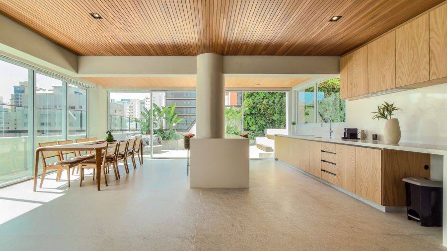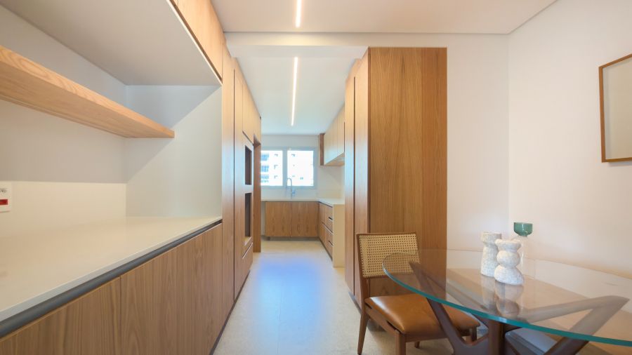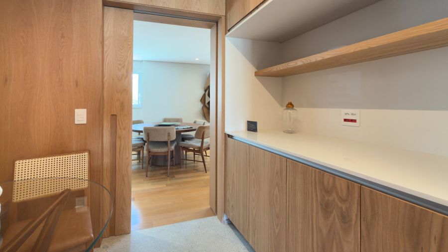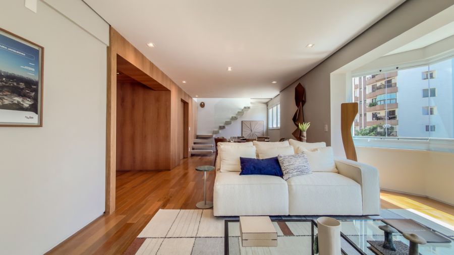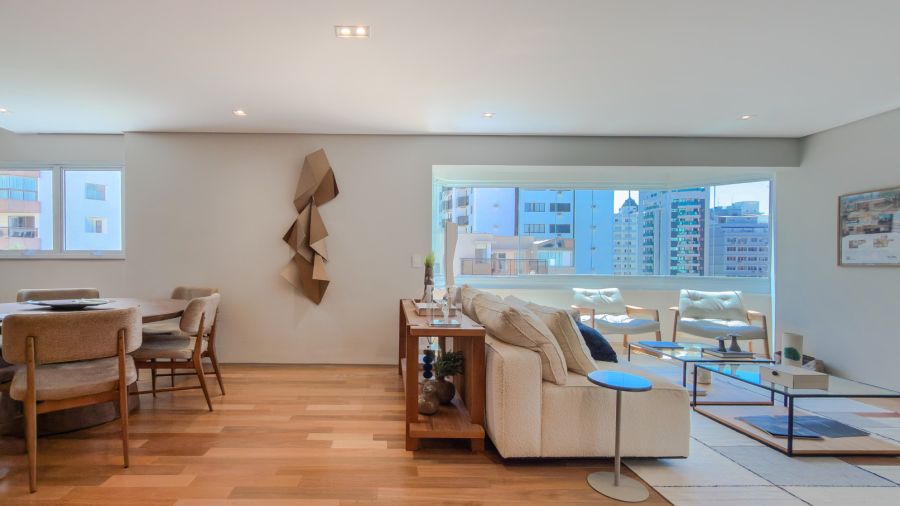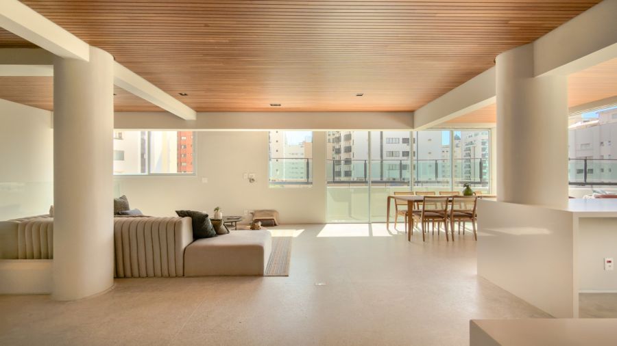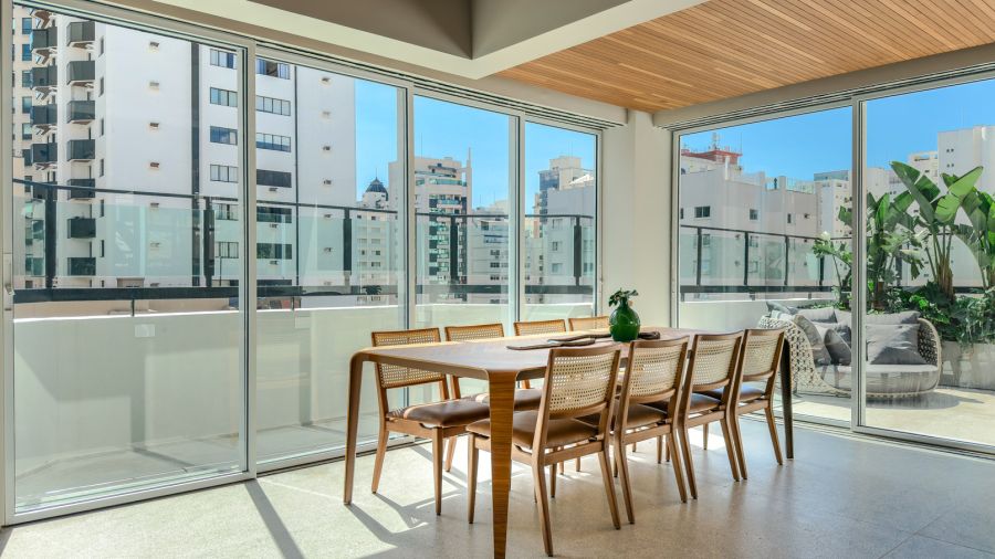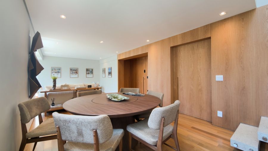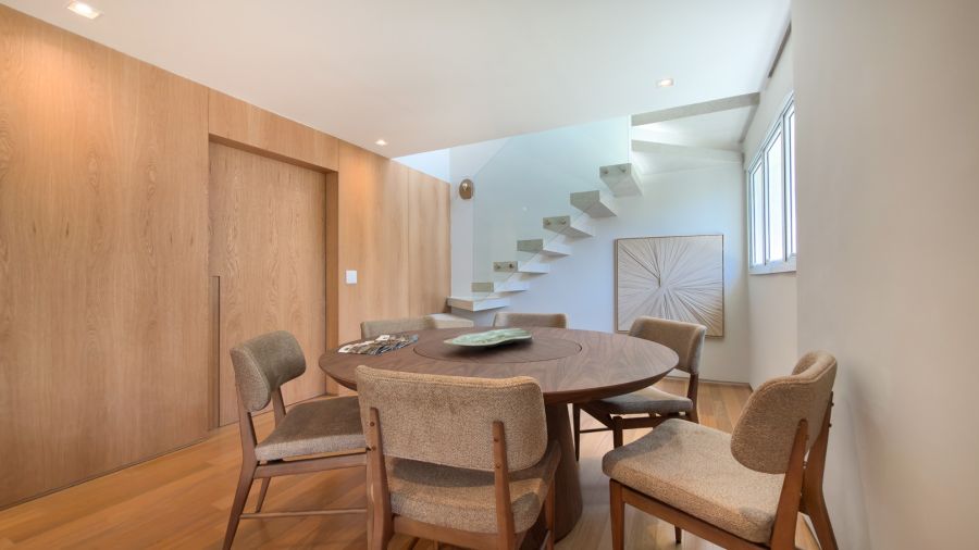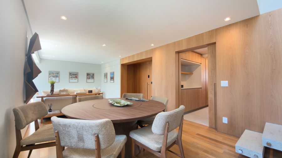 Os espaços se entrelaçam de forma fluida e harmoniosa, exaltando a luz natural e proporcionando versatilidade para criar diferentes atmosferas em qualquer ocasião.