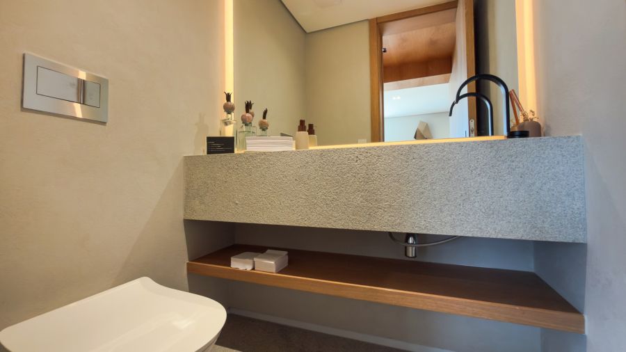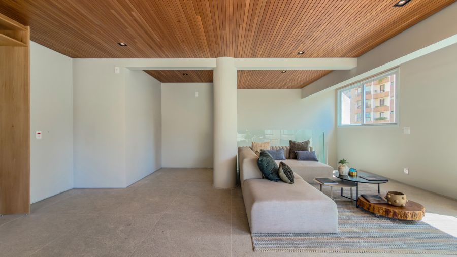 No piso inferior, o living espaçoso permite a criação de ambientes distintos, enquanto as três suítes se transformam em refúgios de conforto, com privacidade e requinte em cada detalhe.