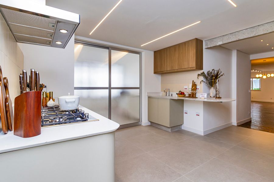 E tem mais: o apartamento será entregue com tudo pronto onde mais importa - marcenaria nova na cozinha, área de serviço e banheiros, além de cooktop, coifa, forno elétrico, e aquecedor a gás.