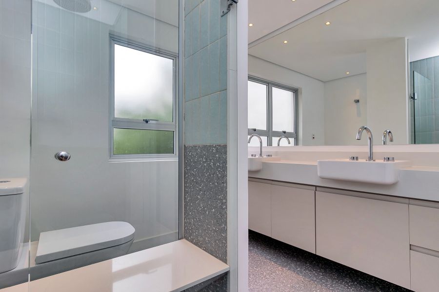 Na área íntima são três suítes, incluindo uma master, além de lavabo, cozinha, despensa e área de serviços com banheiro, e para completar ainda temos duas vagas de garagem para estacionamento de duas SUVs, se for necessário.