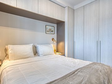 1 dormitório com excelente marcenaria, proporcionando amplo espaço para organização