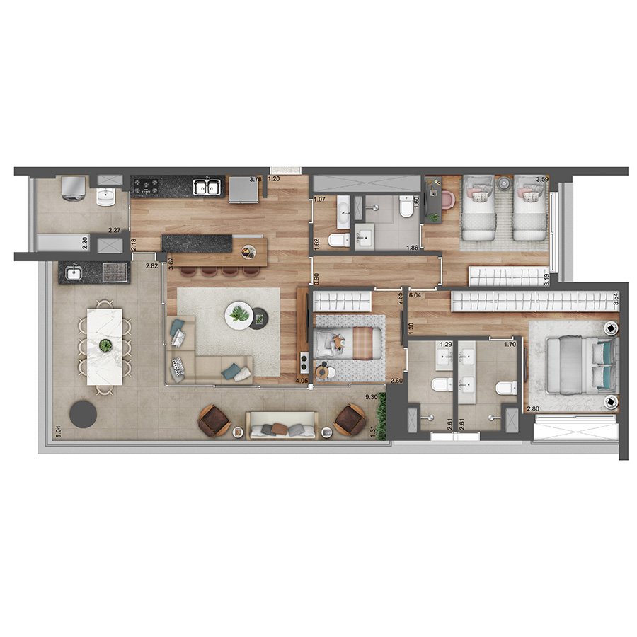 01 duplex - 197m² - 3 suítes - 2 vagas (26ºpav - final 1)