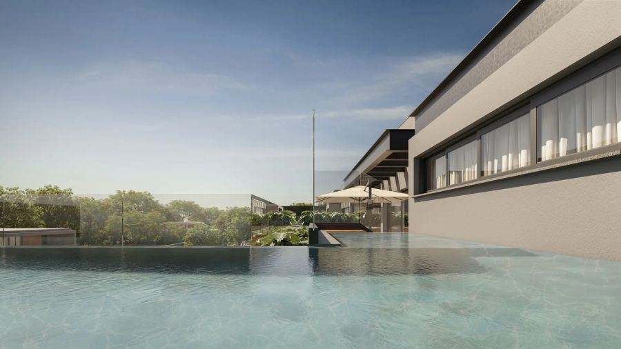 Piscina aquecida com borda infinita no rooftop