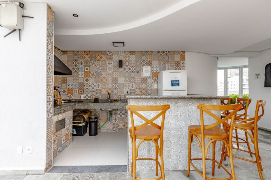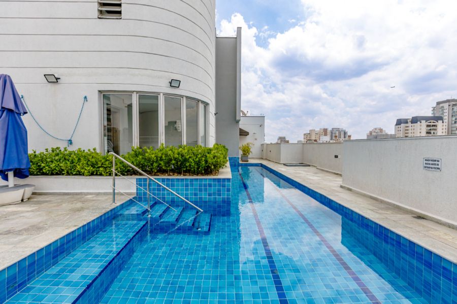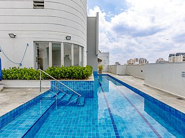 O prédio, com cerca de 25 anos, já nasceu olhando para frente: piscina e academia no rooftop, um privilégio raro na Joaquim Antunes e que possibilita o "viver Pinheiros" de verdade, aproveitando a urbanidade mas ao mesmo tempo com tranquilidade e respiro.
