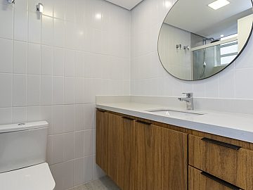 **Apto está sendo entregue com marcenaria (cozinha, área de serviço, gabinetes dos banheiros), cooktop, coifa, forno elétrico, microondas e aquecedor à gás.