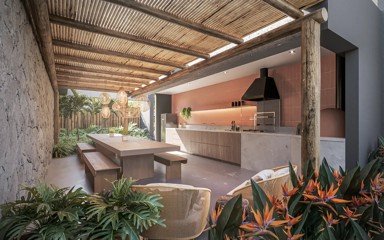 Um conceito que abusa de elementos naturais nativos valorizados pela rusticidade, pelas texturas e imperfeições. Amplos espaços verdes trazem aconchego e integração à natureza.