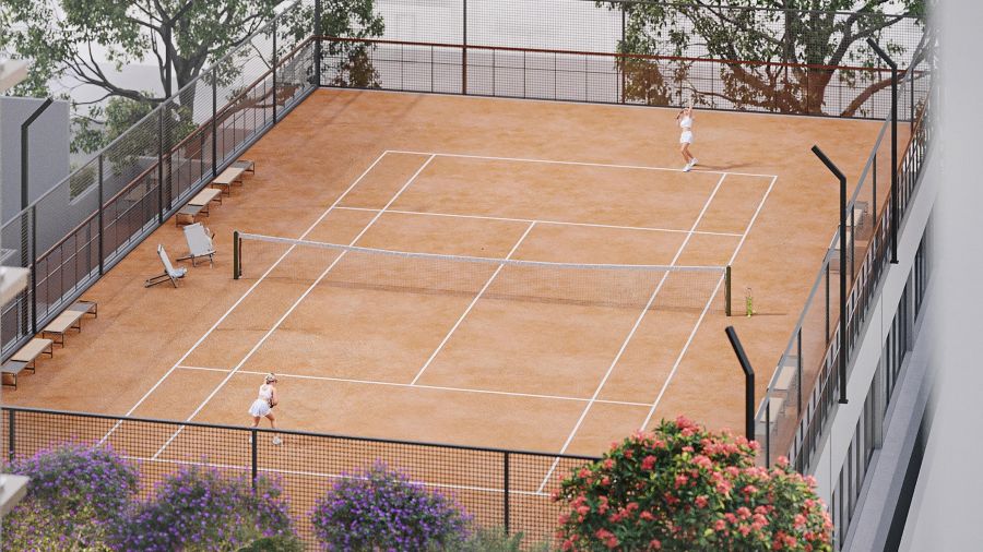 Outdoor Pool, Tennis Lounge, Tennis Court, Pet Place, Mini Market, Delivery Room.