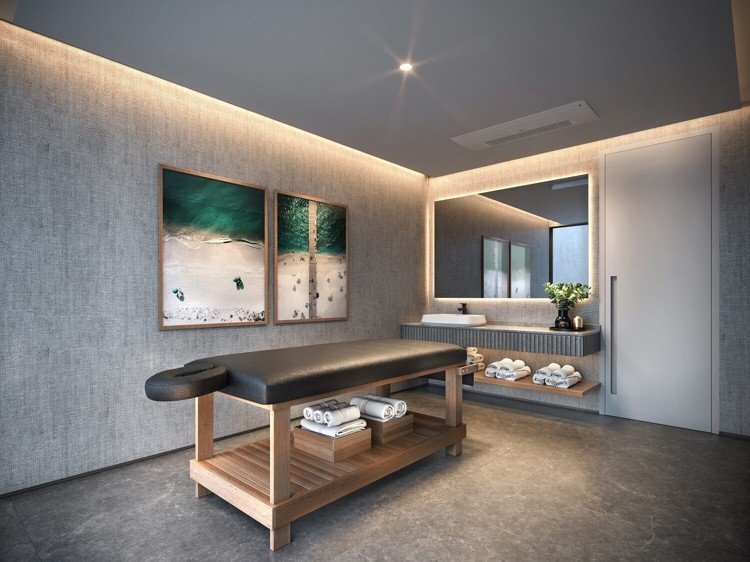 Espaço Bem-estar com sala de massagem e salão de cabeleireiro.