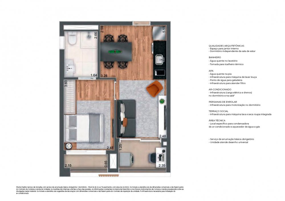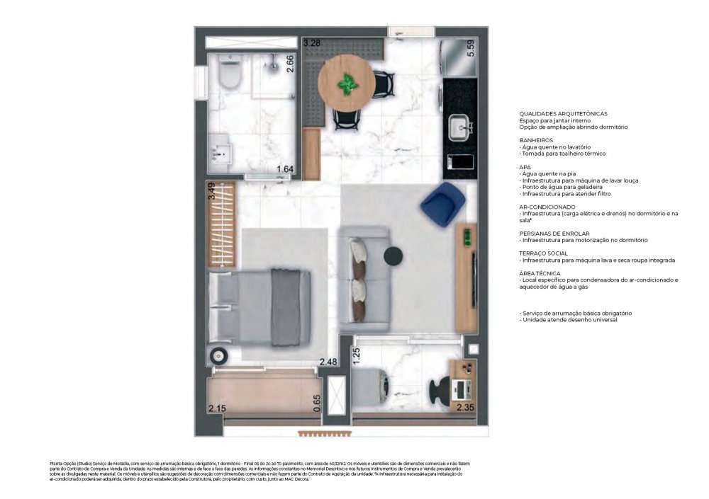 03 unidades de 39,06m² e 39,27m² (Studio PCD) - 0 vaga