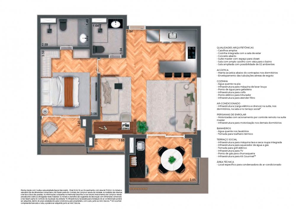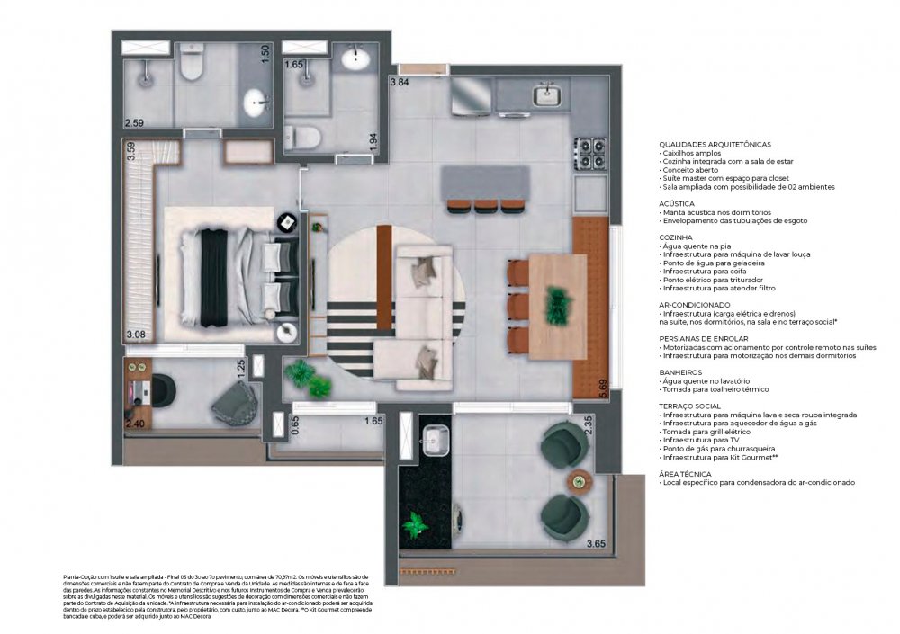 01 unidade de 73,29m² (1 suíte) - 0 vaga