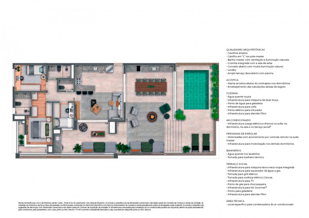01 unidade Penthouse de 193,66m² (21º pav.) - 2 vagas
