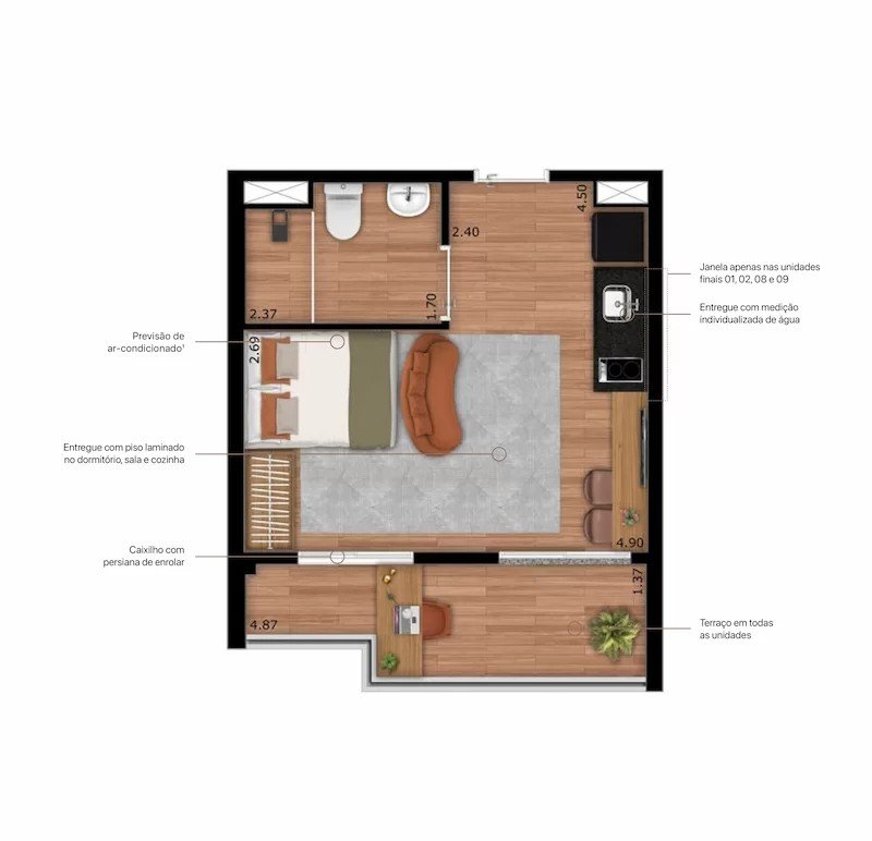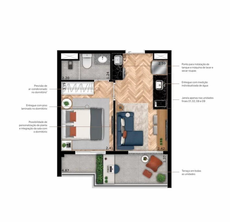 - Área Privativa: 31,20 m²