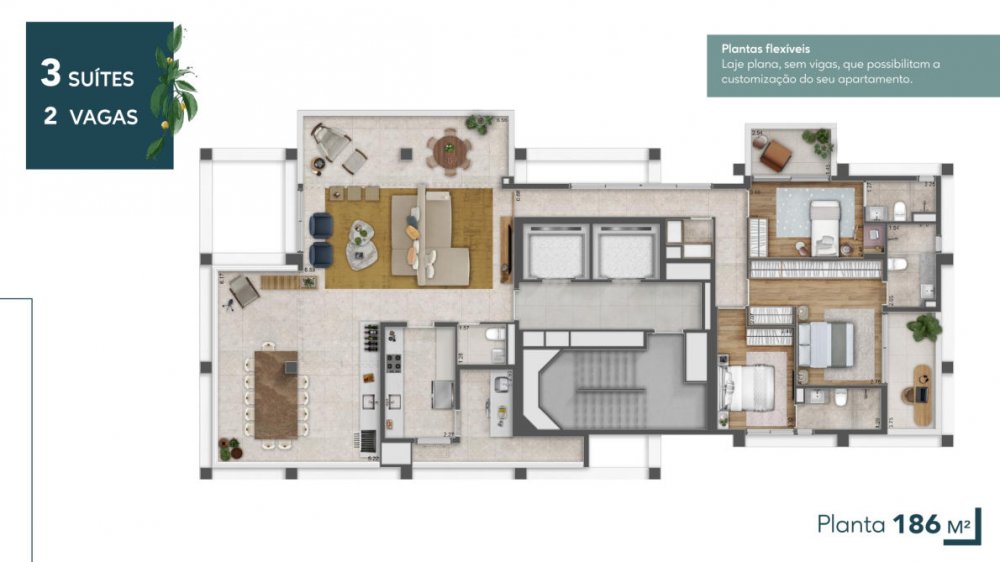 92, 126 e 186m² | Até 3 suítes