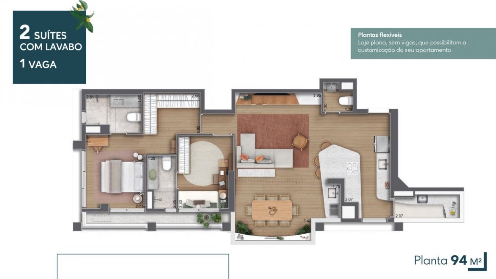 - Área Privativa: 94,12 m²