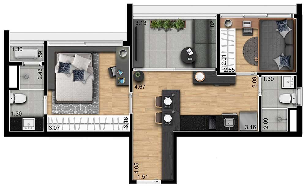 Jardins Studios, 1 e 2 dormitórios