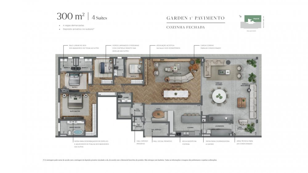 1 unidade garden: 300m² (NR* / 1º pavimento)