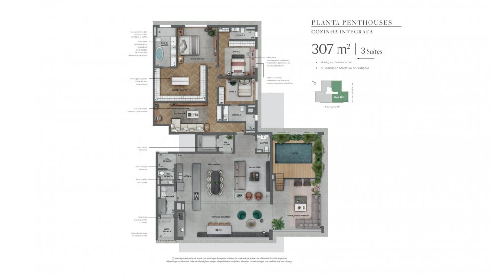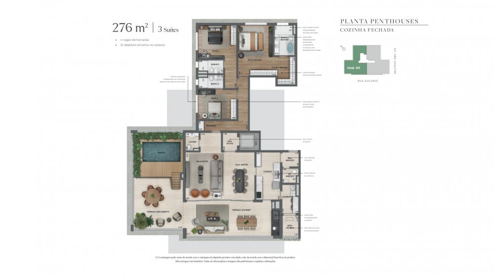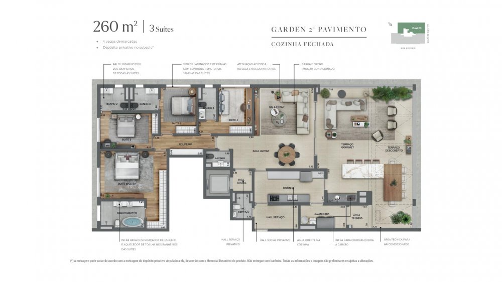 1 unidade garden: 260m² (NR* / 2º pavimento)