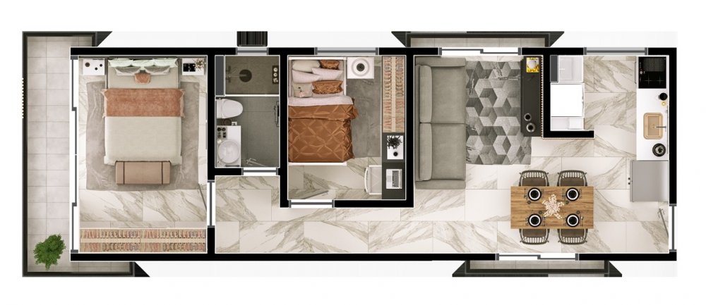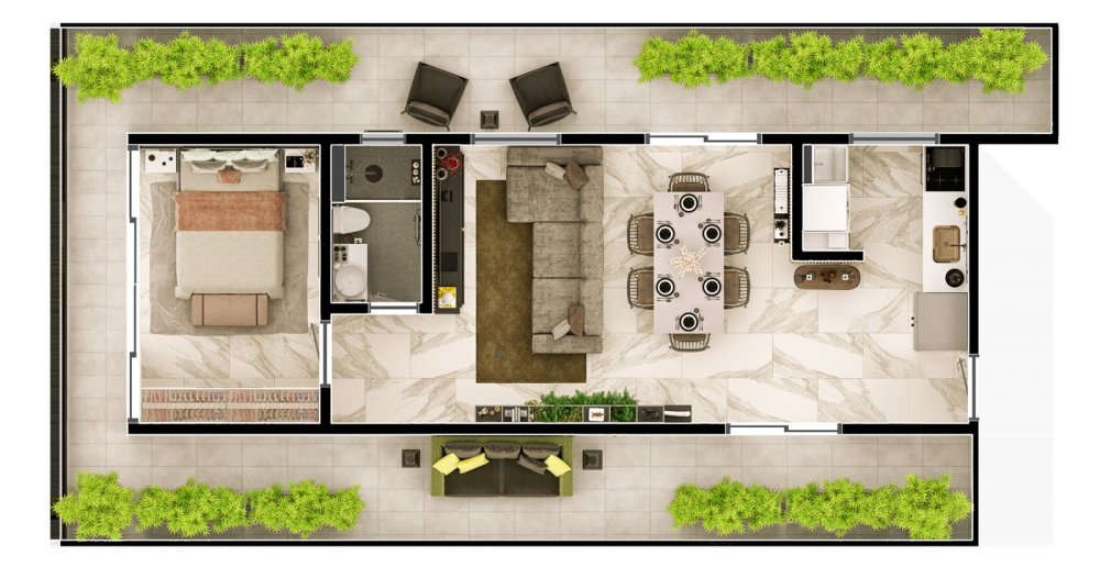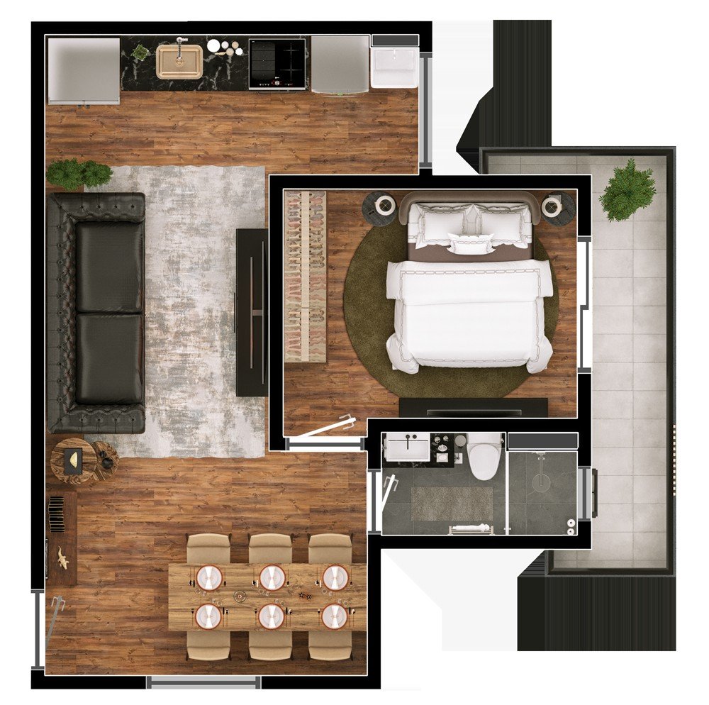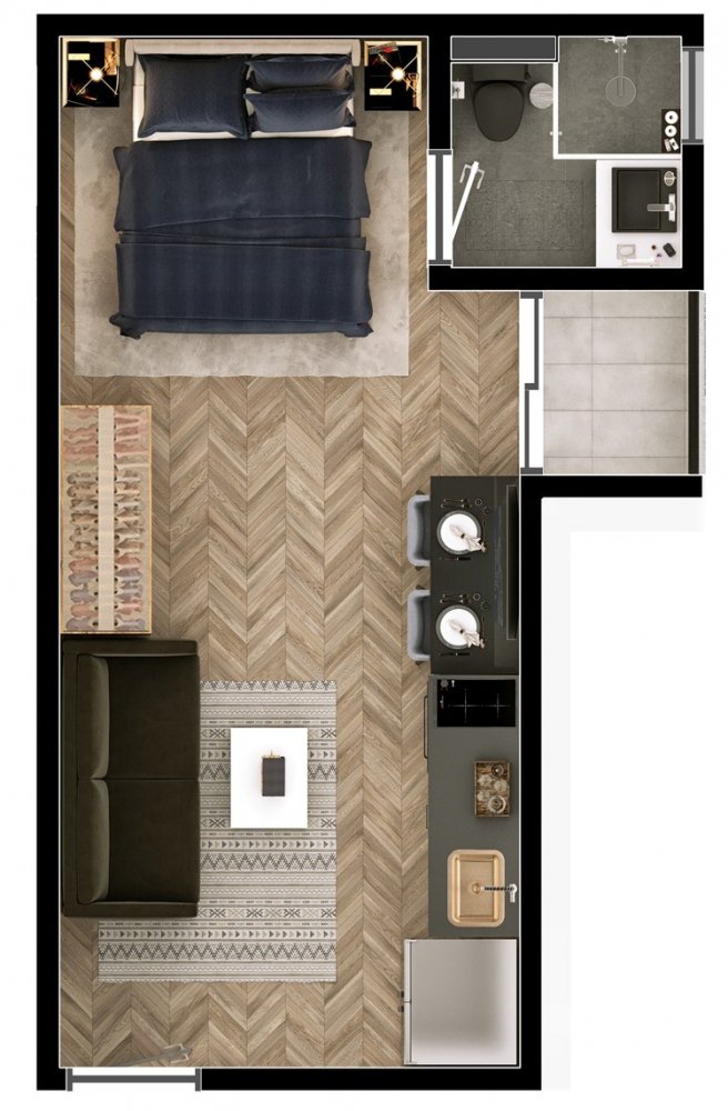 Um empreendimento de torre única com 10 andares e 2 elevadores. Dispõe de 3 opções de plantas, sendo Studios, de 1 e 2 Dormitórios de 25m² a 51m² e também Apartamentos Gardens de 64m² a 86m².